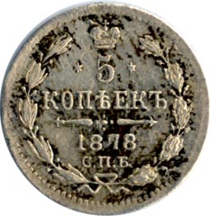 Лицевая сторона — гербовый орел, оборотная —обозначение номинала (5 копеекъ), окруженное венком из лавровой и дубовой ветвей и дата.
