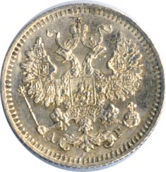 Указом от 22 марта 1860 года для двадцатикопеечников, пятнадцатикопеечников, десятикопеечников и пятикопеечников содержание серебра снижается на 15% и устанавливается 72/96 проба, а указом от 21 марта 1867 года следует снижение еще более чем в полтора раза — нормативный вес уменьшается на 10%, а проба падает до 48/96. Последняя норма сохраняется для разменной монеты вплоть до 1917 года.