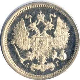 Указом от 22 марта 1860 года для двадцатикопеечников, пятнадцатикопеечников, десятикопеечников и пятикопеечников содержание серебра снижается на 15% и устанавливается 72/96 проба, а указом от 21 марта 1867 года следует снижение еще более чем в полтора раза — нормативный вес уменьшается на 10%, а проба падает до 48/96. Последняя норма сохраняется для разменной монеты вплоть до 1917 года.