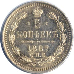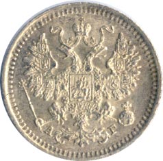 Лицевая сторона — гербовый орел, оборотная —обозначение номинала (5 копеекъ), окруженное венком из лавровой и дубовой ветвей и дата.