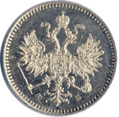 Указом от 22 марта 1860 года для двадцатикопеечников, пятнадцатикопеечников, десятикопеечников и пятикопеечников содержание серебра снижается на 15% и устанавливается 72/96 проба, а указом от 21 марта 1867 года следует снижение еще более чем в полтора раза — нормативный вес уменьшается на 10%, а проба падает до 48/96. Последняя норма сохраняется для разменной монеты вплоть до 1917 года.