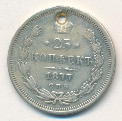 Лицевая сторона — гербовый орел и надпись «ЧИСТОГО СЕРЕБРА 1 ЗОЛОТНИКЪ 5 ДОЛЕЙ», оборотная —обозначение номинала (25 копеекъ), окруженное венком из лавровой и дубовой ветвей и дата.