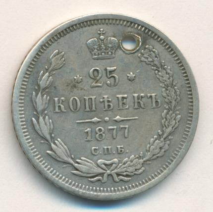 Лицевая сторона — гербовый орел и надпись «ЧИСТОГО СЕРЕБРА 1 ЗОЛОТНИКЪ 5 ДОЛЕЙ», оборотная —обозначение номинала (25 копеекъ), окруженное венком из лавровой и дубовой ветвей и дата.