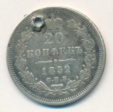 Лицевая сторона — новый гербовый орел с поднятыми крыльями, оборотная —обозначение номинала (20 копеекъ), окруженное венком из лавровой и дубовой ветвей и дата. Проба — 868, нормативный вес — 4,15 грамма.