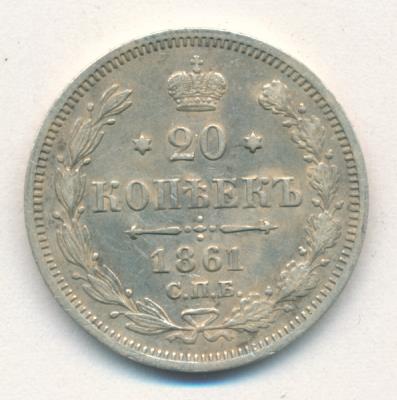 В 1861 году из-за перегруженности Петербургского двора заказы на чеканку части 20, 15 и 10 копеек размещаются на Парижском и Страсбургском монетных дворах. На этих монетах тот же знак двора СПБ, но отсутствует знак минцмейстера.