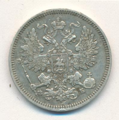 Лицевая сторона — гербовый орел, оборотная —обозначение номинала (20 копеекъ), окруженное венком из лавровой и дубовой ветвей и дата.
