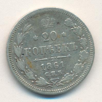 В 1861 году из-за перегруженности Петербургского двора заказы на чеканку части 20, 15 и 10 копеек размещаются на Парижском и Страсбургском монетных дворах. На этих монетах тот же знак двора СПБ, но отсутствует знак минцмейстера.