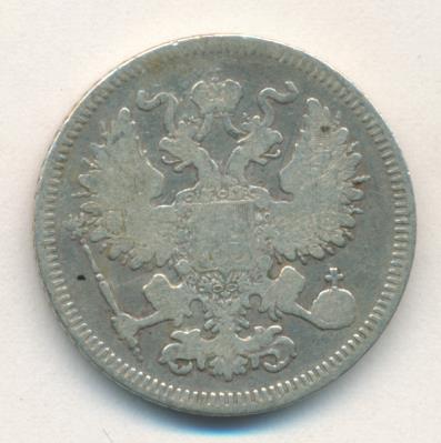 Лицевая сторона — гербовый орел, оборотная —обозначение номинала (20 копеекъ), окруженное венком из лавровой и дубовой ветвей и дата.