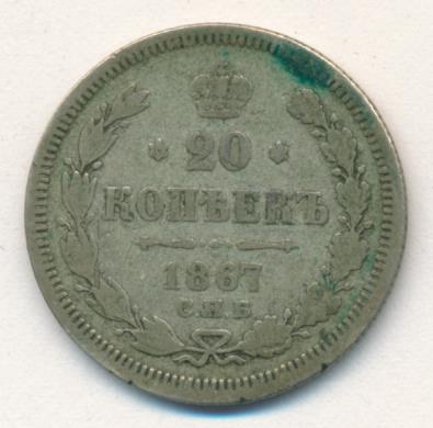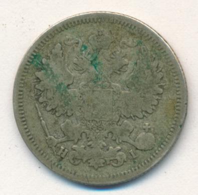 Лицевая сторона — гербовый орел, оборотная —обозначение номинала (20 копеекъ), окруженное венком из лавровой и дубовой ветвей и дата.