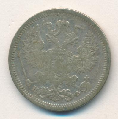 Лицевая сторона — гербовый орел, оборотная —обозначение номинала (20 копеекъ), окруженное венком из лавровой и дубовой ветвей и дата.