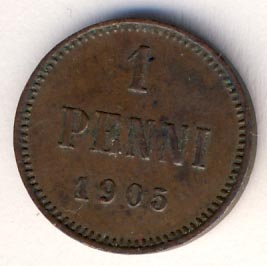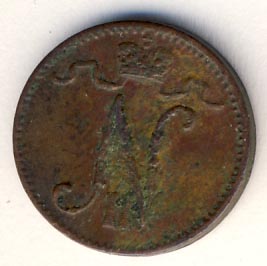Лицевая сторона — вензель Александра II, оборотная — номинал (1 PENNIA) и дата. Нормативный вес — 1,28 грамма, гурт гладкий.