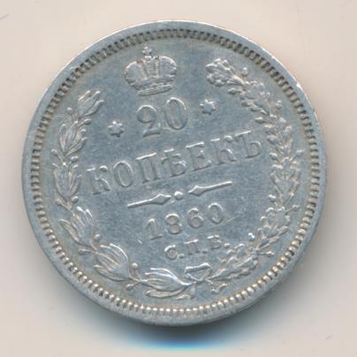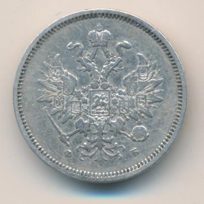 Лицевая сторона — гербовый орел, оборотная —обозначение номинала (20 копеекъ), окруженное венком из лавровой и дубовой ветвей и дата.