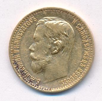 Лицевая сторона — портрет Николая II и надпись «Б.М. НИКОЛАЙ II ИМПЕРАТОРЪ И САМОДЕРЖЕЦЪ ВСЕРОСС»», оборотная — двуглавый орел, обозначение номинала (5 рублей) и дата.