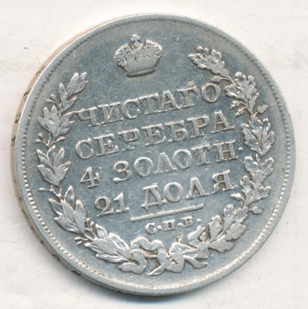 Выделяют три типа орла. Лицевая сторона - двуглавый орел, дата и надпись «МОНЕТА РУБЛЬ», оборотная — окруженная венком из лавровой и дубовой ветвей надпись «ЧИСТАГО СЕРЕБРА 4 ЗОЛОТН 21 ДОЛЯ». Проба — 868, нормативный вес — 20,73 грамма.