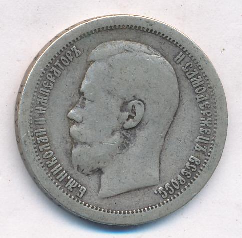 Лицевая сторона — портрет Николая II в круговой надписи «Б.М. НИКОЛАЙ II ИМПЕРАТОРЪ И САМОДЕРЖЕЦЪ ВСЕРОСС», оборотная — двуглавый орел, обозначение номинала (50 копеекъ) и дата.
