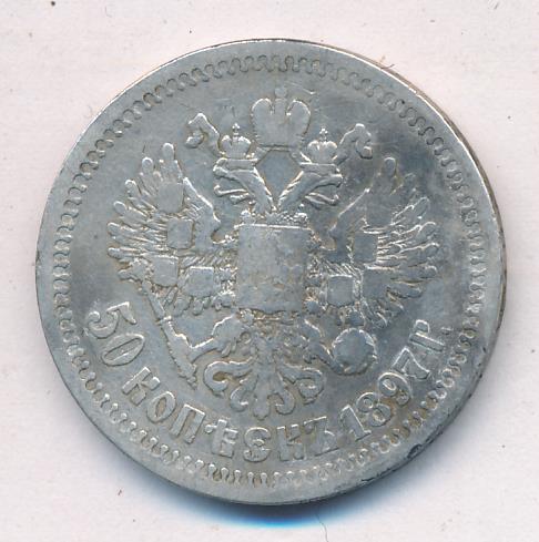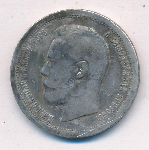 Лицевая сторона — портрет Николая II в круговой надписи «Б.М. НИКОЛАЙ II ИМПЕРАТОРЪ И САМОДЕРЖЕЦЪ ВСЕРОСС», оборотная — двуглавый орел, обозначение номинала (50 копеекъ) и дата.