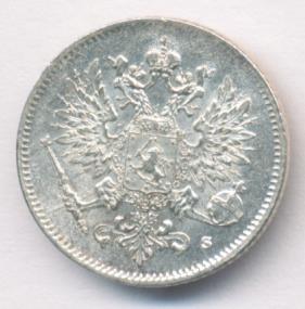 Лицевая сторона — российский двуглавый орел с гербом Великого княжества Финляндского на груди, оборотная — номинал и дата в венке из дубовых листьев. Проба — 750, нормативный вес — 1,27 грамма, гурт рубчатый.