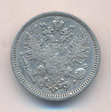 Лицевая сторона — российский двуглавый орел с гербом Великого княжества Финляндского на груди, оборотная — номинал и дата в венке из дубовых листьев. Проба — 750, нормативный вес — 2,55 грамма, гурт рубчатый.