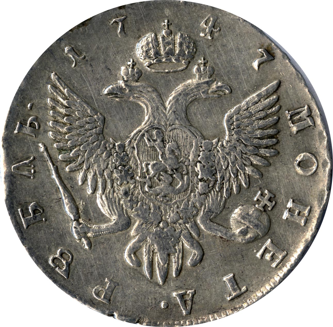 В 1741 году появляется и новый петербургский тип рубля — портрет погрудный, в плаще, без орденского знака (кроме очень редких монет этого года, выполненных штемпелями московского типа 65). Этот тип не меняется до 1754 года. С 1743 года такое же оформление получают петербургские полтины.