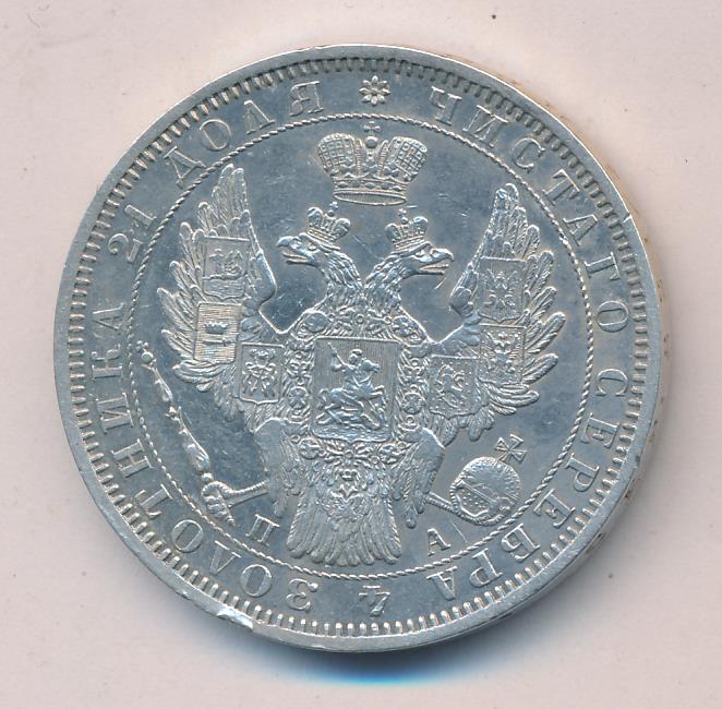 Лицевая сторона — новый гербовый орел с поднятыми крыльями и надпись «ЧИСТОГО СЕРЕБРА 4 ЗОЛОТНИКА 21 ДОЛЯ», оборотная — надпись «МОНЕТА РУБЛЬ», окруженная венком из лавровой и дубовой ветвей и дата.