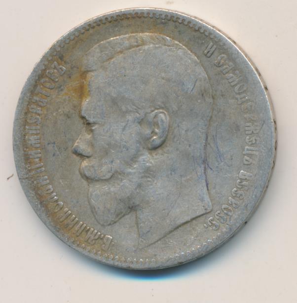 Николай II сохраняет принятый отцом тип, но на банковских монетах его портрет (работы Васютинского) повернут влево (на запад). На оборотной стороне сохраняется тот же герб, вплоть до знака АГ под задней ногой коня.