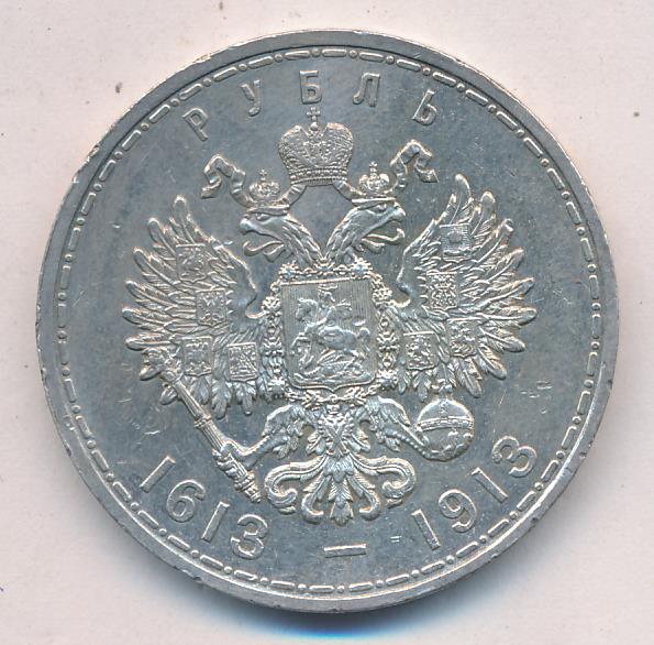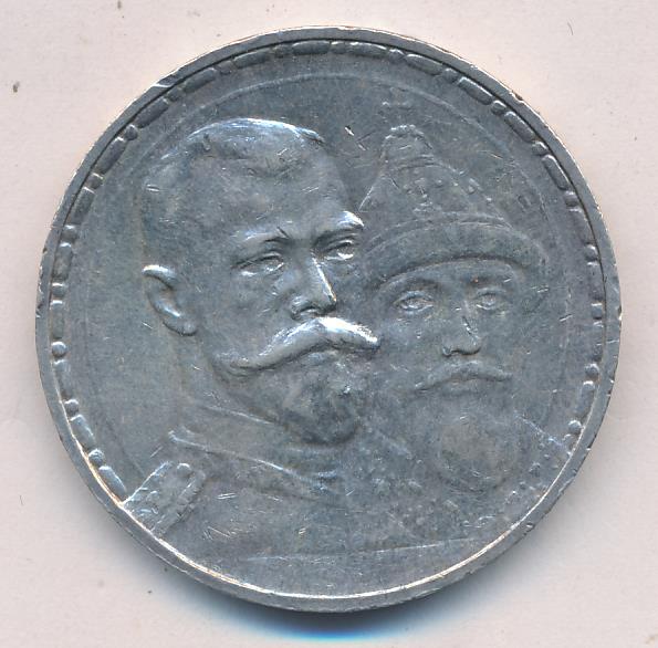К 300-летию царствования Дома Романовых выпустили и юбилейный рубль, отчеканенный грандиозным тиражом почти в полтора миллиона экземпляров. На лицевой стороне монеты разместили портрет императора Николая II в военной форме, за спиной которого виден основатель династии, царь Михаил Романов в царском одеянии и в шапке Мономаха.