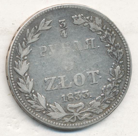 Указом от 27 января 1833 года утверждаются два номинала — полтора рубля/десять злотых и три четверти рубля/пять злотых. Указом от 1 мая 1834 года разрешается чеканка всех номиналов Варшавскому двору. Для организации штемпельного производства из Петербурга 19 июня того же года высылаются рисунки, четыре пары штемпелей и четыре образцовых монеты.