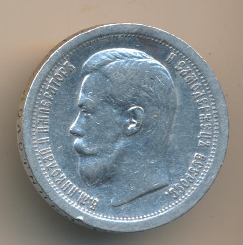 Лицевая сторона — портрет Николая II в круговой надписи «Б.М. НИКОЛАЙ II ИМПЕРАТОРЪ И САМОДЕРЖЕЦЪ ВСЕРОСС», оборотная — двуглавый орел, обозначение номинала (50 копеекъ) и дата.