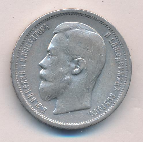 Лицевая сторона — портрет Николая II в круговой надписи «Б.М. НИКОЛАЙ II ИМПЕРАТОРЪ И САМОДЕРЖЕЦЪ ВСЕРОСС», оборотная — двуглавый орел, обозначение номинала (50 копеекъ) и дата.