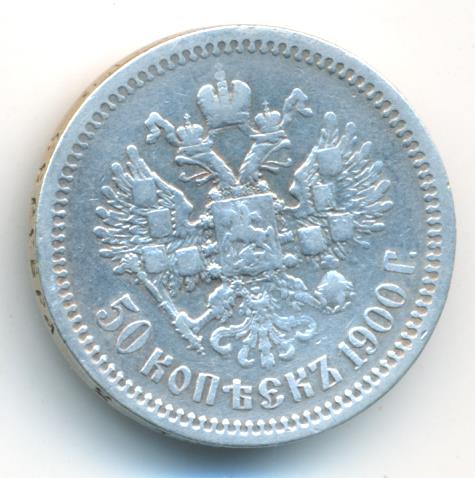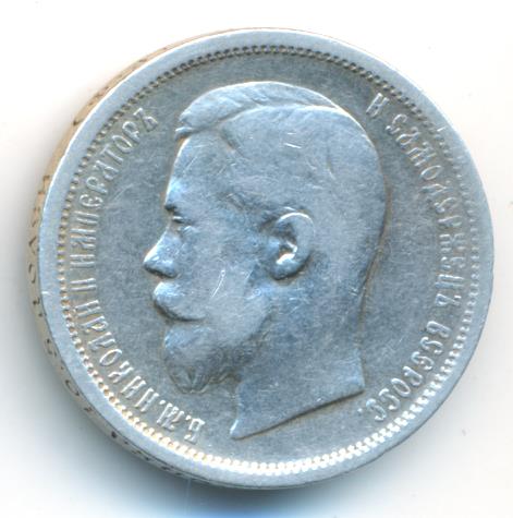 Лицевая сторона — портрет Николая II в круговой надписи «Б.М. НИКОЛАЙ II ИМПЕРАТОРЪ И САМОДЕРЖЕЦЪ ВСЕРОСС», оборотная — двуглавый орел, обозначение номинала (50 копеекъ) и дата.