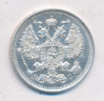 Лицевая сторона — гербовый орел, оборотная —обозначение номинала (20 копеекъ), окруженное венком из лавровой и дубовой ветвей и дата.