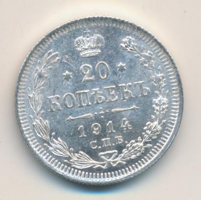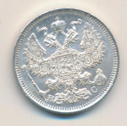 Лицевая сторона — гербовый орел, оборотная —обозначение номинала (20 копеекъ), окруженное венком из лавровой и дубовой ветвей и дата.