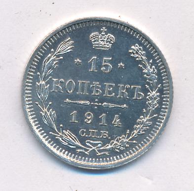 Лицевая сторона — гербовый орел, оборотная —обозначение номинала (15 копеекъ), окруженное венком из лавровой и дубовой ветвей и дата.
