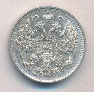 Лицевая сторона — гербовый орел, оборотная —обозначение номинала (15 копеекъ), окруженное венком из лавровой и дубовой ветвей и дата.