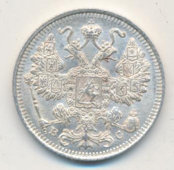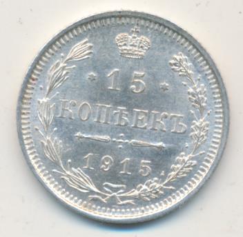 Лицевая сторона — гербовый орел, оборотная —обозначение номинала (15 копеекъ), окруженное венком из лавровой и дубовой ветвей и дата.