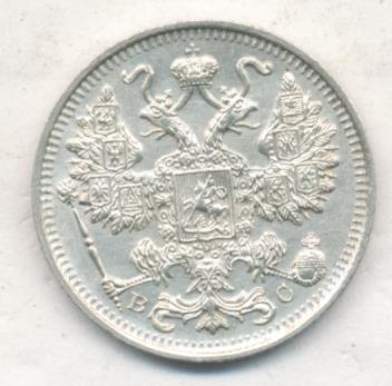 Лицевая сторона — гербовый орел, оборотная —обозначение номинала (15 копеекъ), окруженное венком из лавровой и дубовой ветвей и дата.