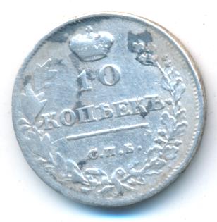 Лицевая сторона - двуглавый орел и дата, оборотная — обозначение номинала (10 копеекъ) в венке из лавровой и дубовой ветвей. Проба до 1813 года — 750, нормативный вес — 2,40 грамма; после 1813 года — проба 868, нормативный вес — 2,07 грамма.