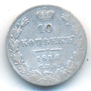 Лицевая сторона — новый гербовый орел с поднятыми крыльями, оборотная —обозначение номинала (10 копеекъ), окруженное венком из лавровой и дубовой ветвей и дата. Проба — 868, нормативный вес — 2,07 грамма.
