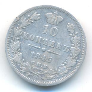 Лицевая сторона — новый гербовый орел с поднятыми крыльями, оборотная —обозначение номинала (10 копеекъ), окруженное венком из лавровой и дубовой ветвей и дата. Проба — 868, нормативный вес — 2,07 грамма.
