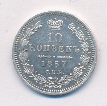 Лицевая сторона — новый гербовый орел с поднятыми крыльями, оборотная —обозначение номинала (10 копеекъ), окруженное венком из лавровой и дубовой ветвей и дата. Проба — 868, нормативный вес — 2,07 грамма.