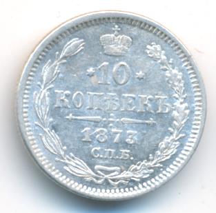 Лицевая сторона — гербовый орел, оборотная —обозначение номинала (10 копеекъ), окруженное венком из лавровой и дубовой ветвей и дата.