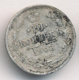 Лицевая сторона — гербовый орел, оборотная —обозначение номинала (10 копеекъ), окруженное венком из лавровой и дубовой ветвей и дата.