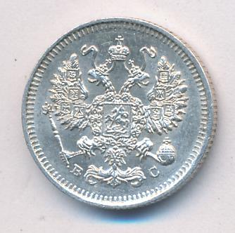 Лицевая сторона — гербовый орел, оборотная —обозначение номинала (10 копеекъ), окруженное венком из лавровой и дубовой ветвей и дата.