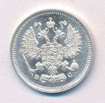Лицевая сторона — гербовый орел, оборотная —обозначение номинала (10 копеекъ), окруженное венком из лавровой и дубовой ветвей и дата.
