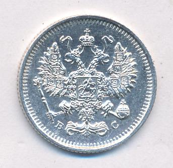 Лицевая сторона — гербовый орел, оборотная —обозначение номинала (10 копеекъ), окруженное венком из лавровой и дубовой ветвей и дата.