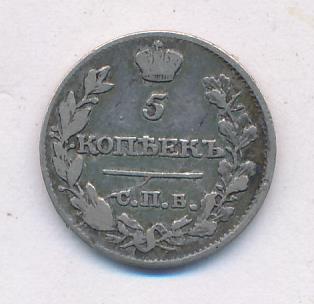 Лицевая сторона - двуглавый орел и дата, оборотная — обозначение номинала (5 копеекъ) в венке из лавровой и дубовой ветвей. Проба до 1813 года — 750, нормативный вес — 1,2 грамма; после 1813 года — проба 868, нормативный вес — 1,04 грамма.