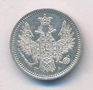 Лицевая сторона — новый гербовый орел с поднятыми крыльями, оборотная —обозначение номинала (5 копеекъ), окруженное венком из лавровой и дубовой ветвей и дата. Проба — 868, нормативный вес — 1,04 грамма.