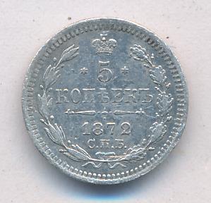 Лицевая сторона — гербовый орел, оборотная —обозначение номинала (5 копеекъ), окруженное венком из лавровой и дубовой ветвей и дата.