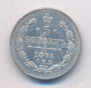 Лицевая сторона — гербовый орел, оборотная —обозначение номинала (5 копеекъ), окруженное венком из лавровой и дубовой ветвей и дата.