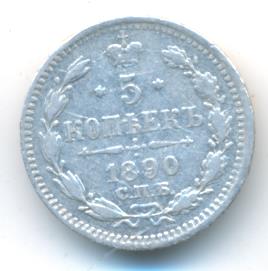 Лицевая сторона — гербовый орел, оборотная —обозначение номинала (5 копеекъ), окруженное венком из лавровой и дубовой ветвей и дата.